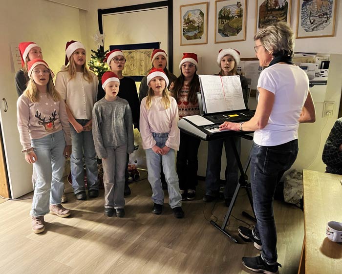 Under ledning av kyrkomusiker Marie Lind, framfördes sånger som ”Nu tändas tusen juleljus”, ”Julen är här” och ”Nu är glada Julen här”. Även en del sånger på engelska som ”We wish you a Merry Christmas” och ”Go Tell it on the Mountain”, fick vi glädjen att lyssna på. Härligt att höra barnröster sjunga dessa fina gamla sånger! Under tiden kunde publiken även njuta av glögg och pepparkakor.