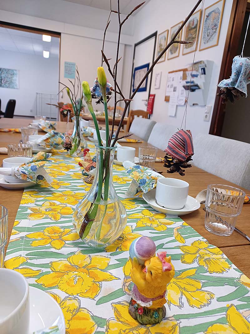 Veronica satte lite extra piff i vaserna med påskliljor från hennes egna täppa.