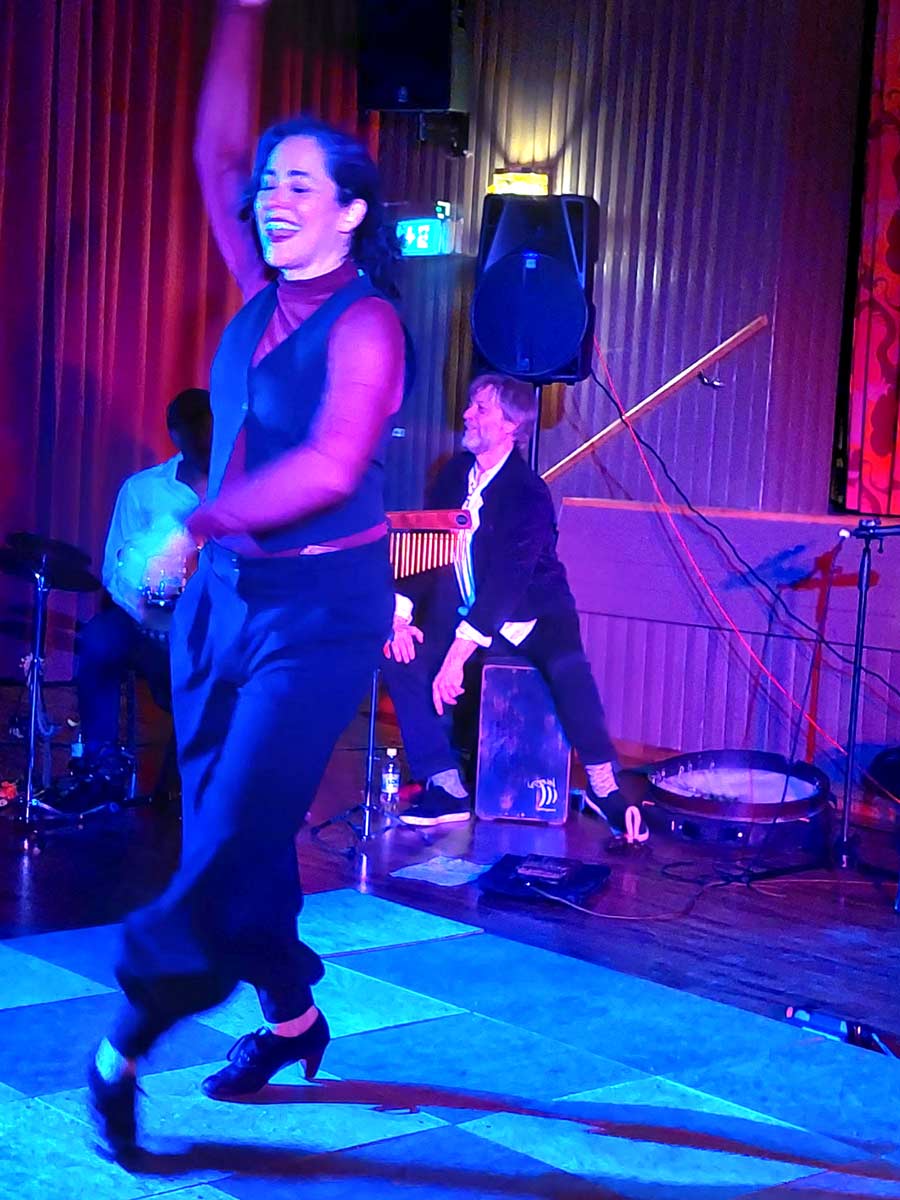 Josette med musiker För kvällen fanns också Alma Söderberg koreograf, performer och flamenco dansare speciellt inbjuden. Alma har bland annat koreograferat uppmärksammade dansföreställningar med Cullberg Ensemble.