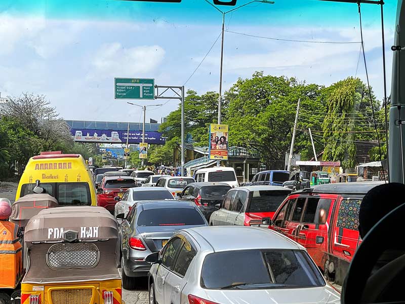 På väg in i Mombasa hamnade vår buss i en rejäl trafikstockning.