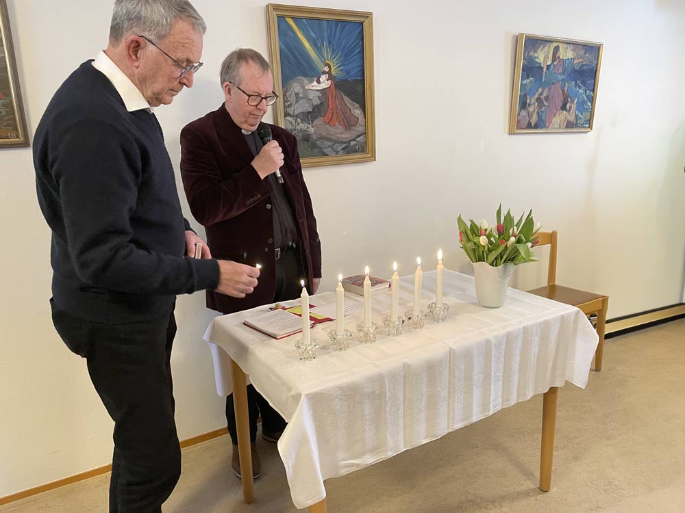 Curre kantor spelade sen “Tro“ av Marie Fredriksson, innan Christer Frostensson höll ett tänkvärt tal om Tro, hopp och Kärlek. Om man får leva länge i en gemenskap, får man ett välfyllt minnesrum, som man kan öppna dörren till och minnas, om det vemodiga händer att någon får lämna. 6 ljus tändes för medlemmar som lämnat oss under 2025, och en tyst minut hölls. Curre spelade sen “Håll mitt hjärta”. En mycket stämningsfull parentation.