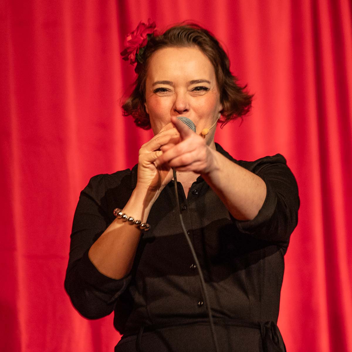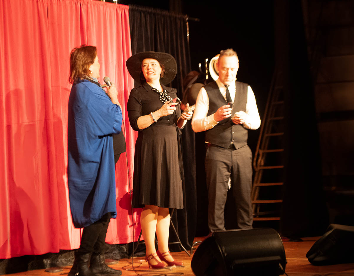 Teaterföreningens ordförande Birgitte Leger tackade för en föreställning med musik, humor och teater