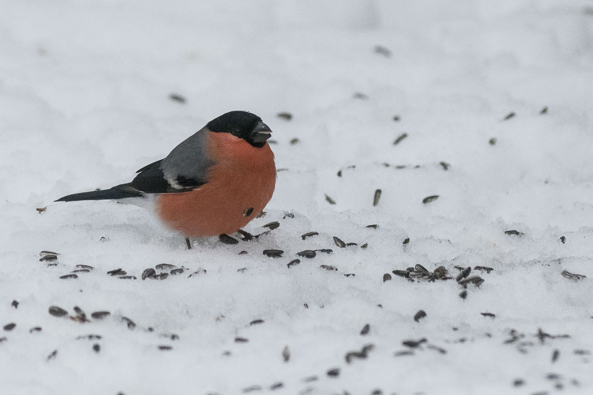 Domherren är en populär gäst vid fågelmatningarna, och det kan man även säga om två andra arter som nu är talrikare gäster än när denna räkning inleddes 2006. Det handlar om steglitsen och stjärtmesen.