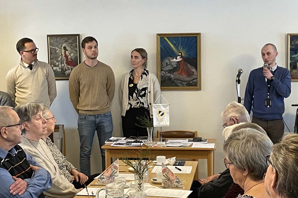 Därefter välkomnades 7 representanter från Länsförsäkringar. De hade olika arbetsområde inom Länsförsäkringar. Fastighetsmäklare, rådgivning, bankärende, försäkringar för nästan allt. På frågan om banken har kontanthantering blev svaret, Nej det har de aldrig haft. Försäljningen av fastigheter ökade 25 % under pandemin, men nu tar det längre tid att sälja. Går man i tankar att sälja sitt hus ska man kontakta mäklare i god tid, det tar tid att planera, bilder ska gärna tas när det är vackrast ute. Om man har hem försäkring, finns ett paket med vattenläckagevarnare och 2 brandvarnare som är kopplat till en app i telefonen, kan beställas på hemsidan. Jan tackar för den intressanta informationen om deras olika arbetsområden, och Pontus tackar för att de fick komma. Och fikat ville de inte missa. Vi tackar Snapphanebygdens sparbank för semlorna.