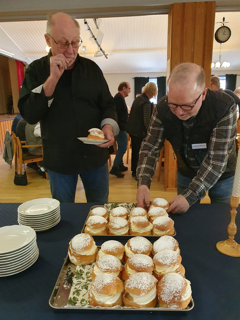 Kaffe följde med Fastlagsbullar som Snapphanebygdens Sparbank skänkt och som Bjärnums Konditori bakat. Mycket gott och tack till både bank och bagare. Lotterivinnare drogs som vanligt och dessa blev naturligtvis glada. Nästa gång vi träffas kommer Maria Jönsson att underhålla oss med sång och musik. Detta sker den 19 mars.