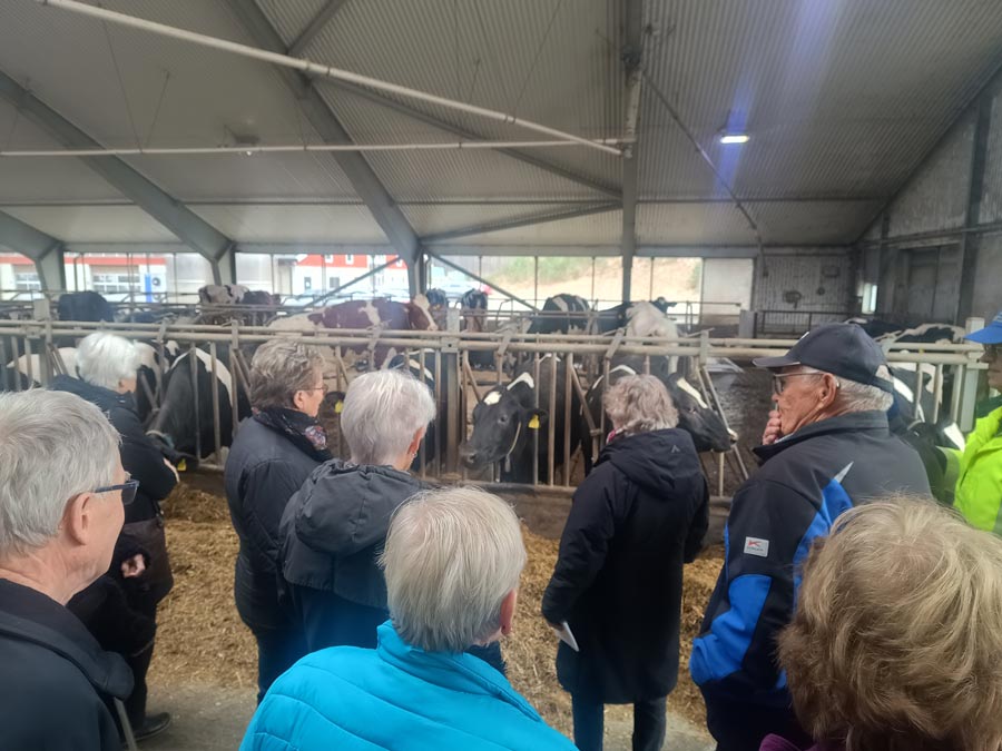 År 2019 invigdes de två första nya kostallarna. Vid denna rundvandring fick vi lära oss hur allting sköts digitalt, när de ska äta och hur mycket näringsriktig mat de ska ha och när de ska mjölkas. Korna har en liten digital klocka om halsen som både ger kossan signaler som appen i telefonen, hos Christoffer. Imponerande. Ytterligare en stallbyggnad och förlängning av ett befintligt stall har byggts 2024. Jag tror att jag kan tala för gruppen att vi tyckte korna har det mycket bra, mjölk och kött som levereras är av högsta kvalité. Mjölken skickas varannan dag till Skånemejeriet, för att till slut hamna på vårt bord i form av mjölk, ost, fil i alla möjliga former. Tack Hans för en trevlig och informativ eftermiddag. SPF Trivsam tackar för att vi fick komma och besöka Vankivagården.