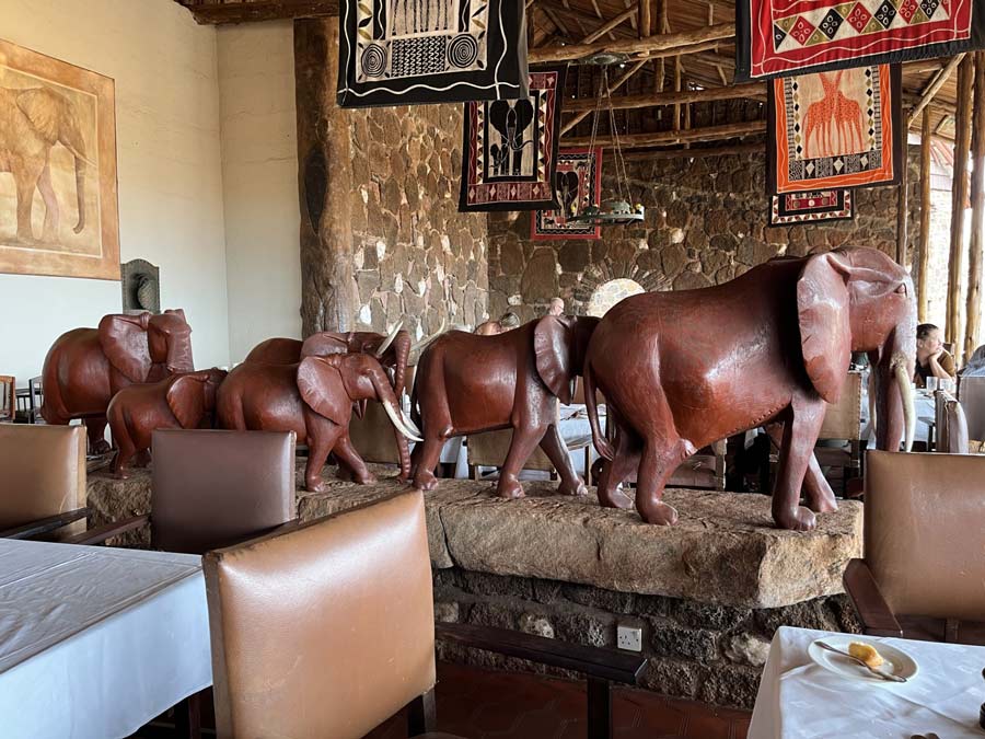 På Amboseli Serena Safari Lodge hade både receptionen, matsalen och de små husen vi bodde i en afrikansk touche.