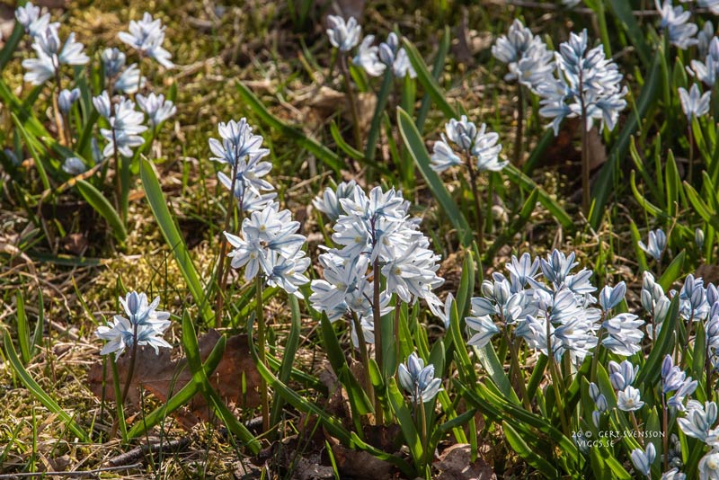 Blommorna är vita till ljust blå med en mörkare blå mittnerv och den blommar i april-maj, en del porslinshyacinter blommar just nu i trädgården.