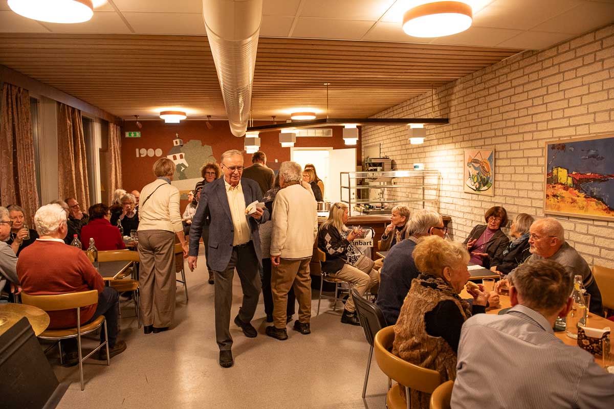 Kvällen inleddes i foajén med lotteriförsäljning och varm korv med bröd serverades.