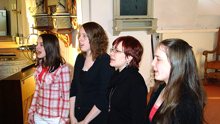De premierade eleverna samlade vid donator- ernas gravplats. F v Amanda Nilsson, Jenny Bui, Love Nylund och Axel Nord.
