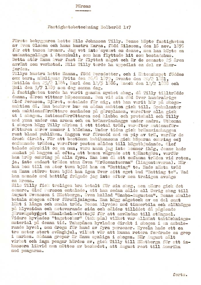 Nedan återges fotograferat Ivar Persson nedtecknade text i original.