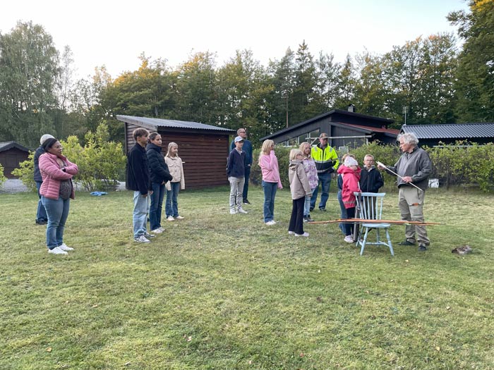 Johan Forssblad hade tagit med sig flera olika bågar, bl a en från Afrika. Han visade olika pilar och vad man ska tänka på när man spänner bågen, och hur man ska lägga pilen. Barnen stod ivriga i kö för att få prova på, och de blev alla efter ett tag riktigt duktiga på att träffa tavlan.