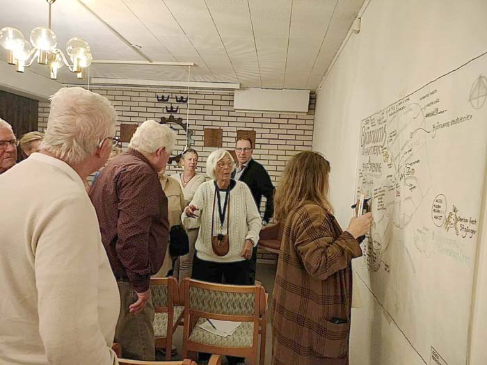 Vandringen avslutades i föreningens lokal under restaurang Tre Hammare med en fika och att de närvarande sedan tillsamman ritade en sorts karta över vad som känns viktigt för byn.
