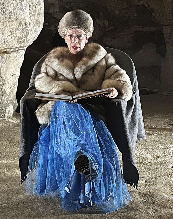 Grottan hade smyckats med olika slags inredningar som hör Halloween till och de som uppträdde passade bra in i detta tema. Alla berättade de sin historia.