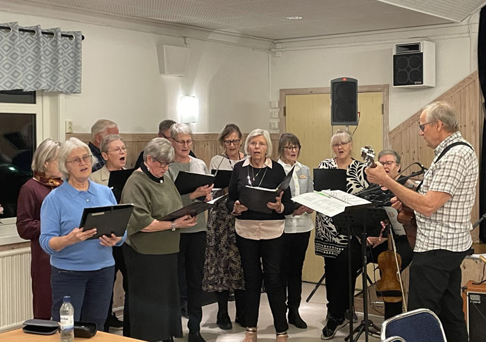 Så småningom hade vi efter lite hjärngymnastik löst Ann-Christines kryss och tre vinnare fick varsin chokladask. Jan Gunnarsson framförde Bygdegårdsföreningens tack i form av choklad till alla musikanter, kören, Ann-Christine, Karin Nylander och Agneta Dahl som bakat kakorna. Som avslutning sjöng vi ”Nu går sista visan” och alla var väldigt nöjda efter en kväll med härlig musikunderhållning och trivsam gemenskap.