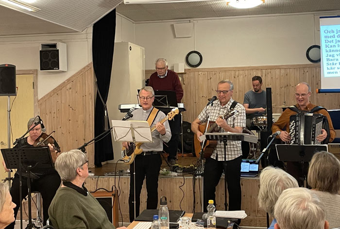 Här blev det också allsång som ackompanjerades av Farstorps All Stars: Anders Lennartsson, akustisk gitarr, Mats Svensson, elgitarr, ”Curre” Nilsson, elpiano, Katarina Tågerud, fiol, Jonas Lennartsson, trummor.