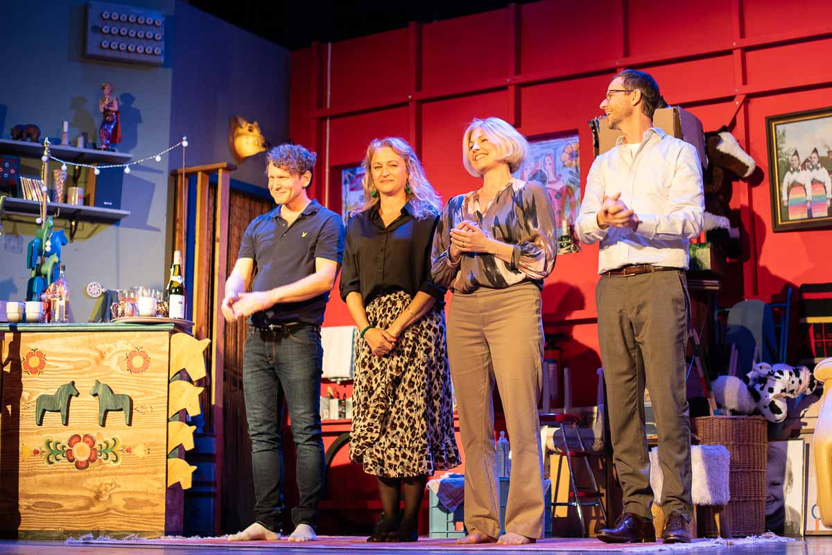 Och så minglade hela publiken i foajen efter föreställningen med cider och samtal med aktörerna Maria Sundblom, Jon Karlsson, Mattias Åhlen och Ellen Fosti.