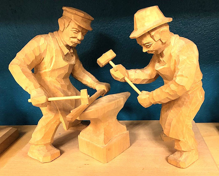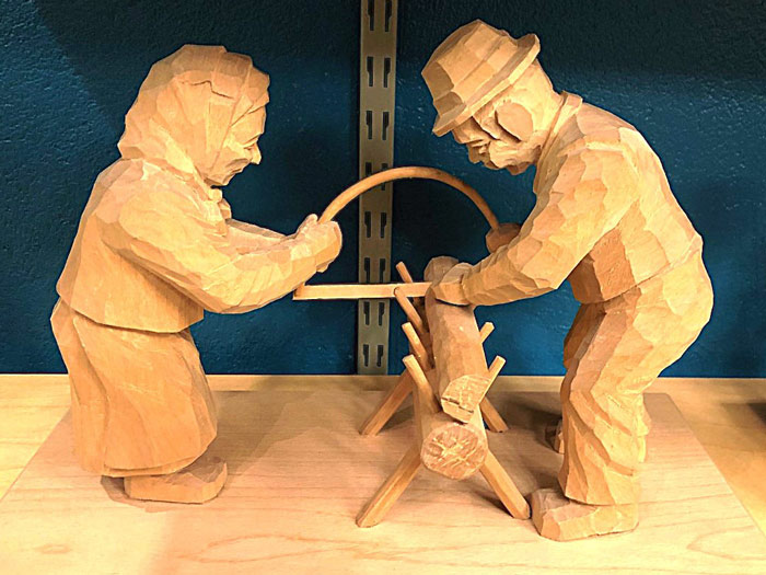 Trä är ett material som också användes flitigt av Alte Nilsson (1920 – 2004). Han jobbade som målare och bonare, det vill säga lackerare och polerare inom snickeribranschen, men på fritiden målade han tavlor och täljde ett stort antal trägubbar. Dessa finns att beskåda på museet dit han senare skänkte hela sin samling. Han hade ingen TV och heller ingen fru, så det fanns gott om tid för honom att sysselsätta sig med denna hobby. Vardagliga situationer var det som inspirerade honom när det gällde hans konstnärskap.