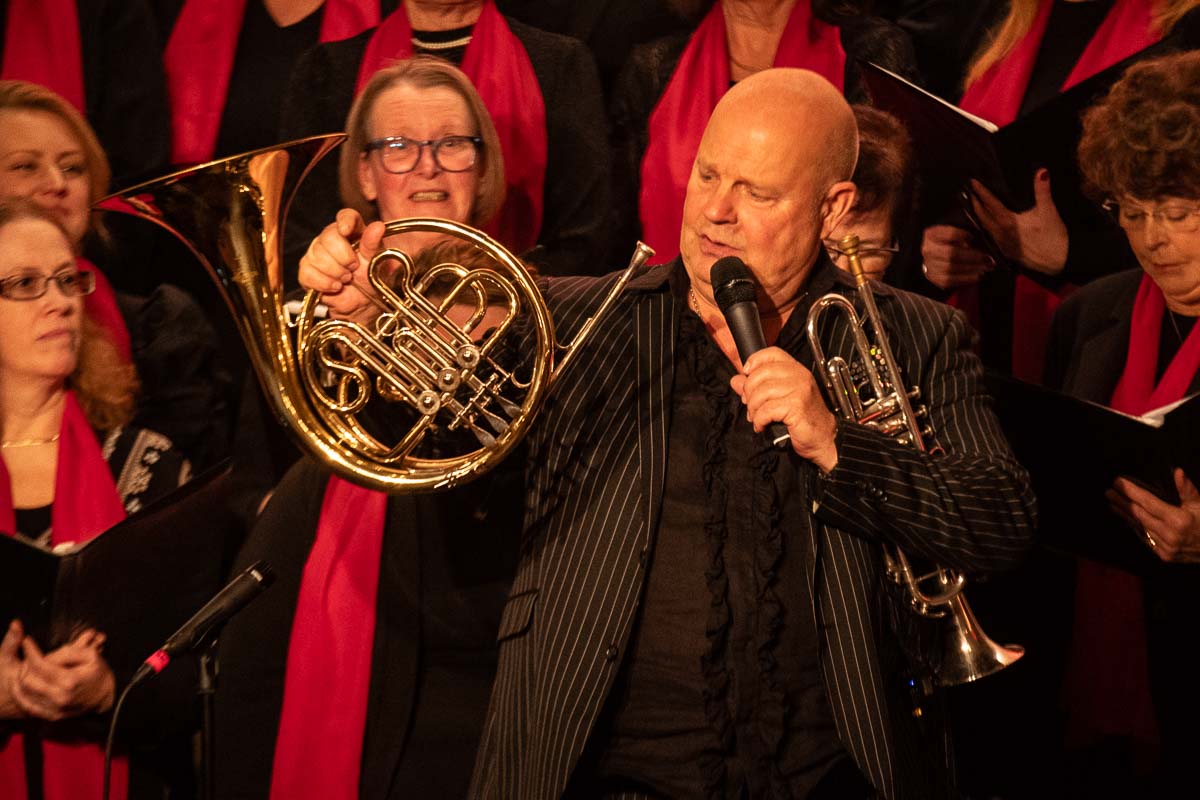 Magnus Johansson som är en av Sveriges mest framstående på trumpet visade sig även bemästra Valthorn. På dessa instrument framförde han den underbara engelska psalmen ”Amazing Grace”. Nu var nivån satt, -helt magiskt, -så vackert.