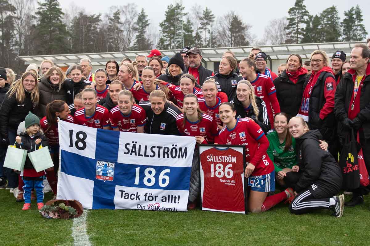 Vid årets sista hemmamatch den 9 november tackade fotbollslegenden Linda Sällström för sig. Efter många år i finska landslaget och många år i Vittsjö GIK lägger hon nu sina fotbollsskor ”på hyllan” och satsar helt på sina läkarstudier.