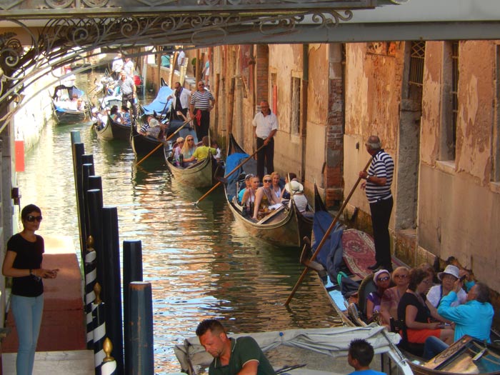 Då var det gratis att promenera runt i Venedig, nu påstås det kosta lite pengar att besöka stan. När vi var där drog dom en lyxkryssare genom hamnen med en bogserbåt före o en efter för att styra kryssaren, kryssarna fick inte gå för egen maskin på grund av risken för oljeolycka vilket skulle vara förödande för Venedig.