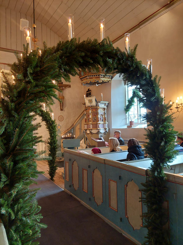 Plötsligt sken solen in genom kyrkfönstret och en stund av fridfull gemenskap i juletid som vi njöt med skönsång av Felicia. Avslutningsvis förmedlade Sven Röstin en inbjudan till fortsatt gemenskap i Församlingshemmet.
