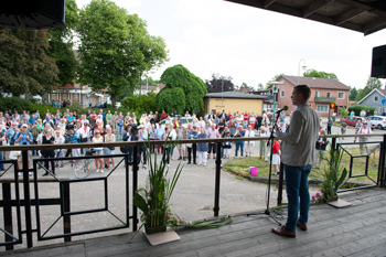 VITTSJÖ. När Gustav Fridlin höll sitt tal var det en stor skara som slutit upp och mediabevakningen var hög.