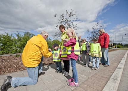 Barnen möttes av Sven-Ingvar Persson från Lions, som gav dem en stämpel på handen.