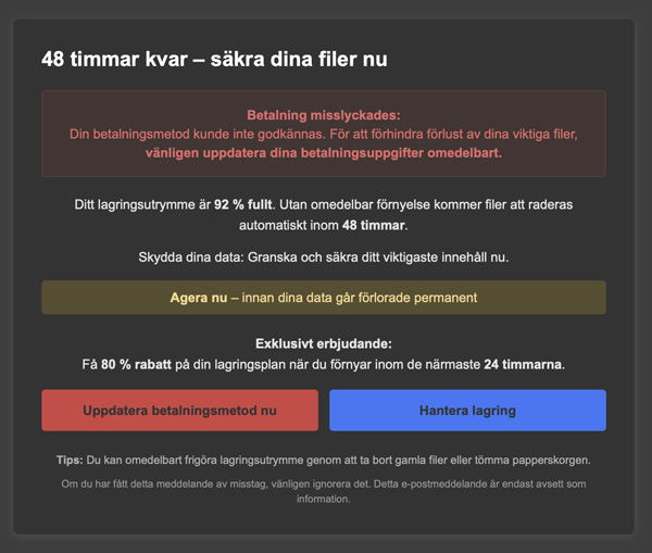 Om du får ett ”Tråkigt samtal”, -typiskt för en bedragare att spela på dina känslor, gör INGET förhastat, uppge ALDRIG något kontonummer eller ALDRIG ett Lösenord. Kolla via berörda, eventuellt myndigheter, sanningshalten i vad uppringaren pratade om. Om det inte stämmer Polisanmäl händelsen omedelbart via i första hand 114 14 eller 112.