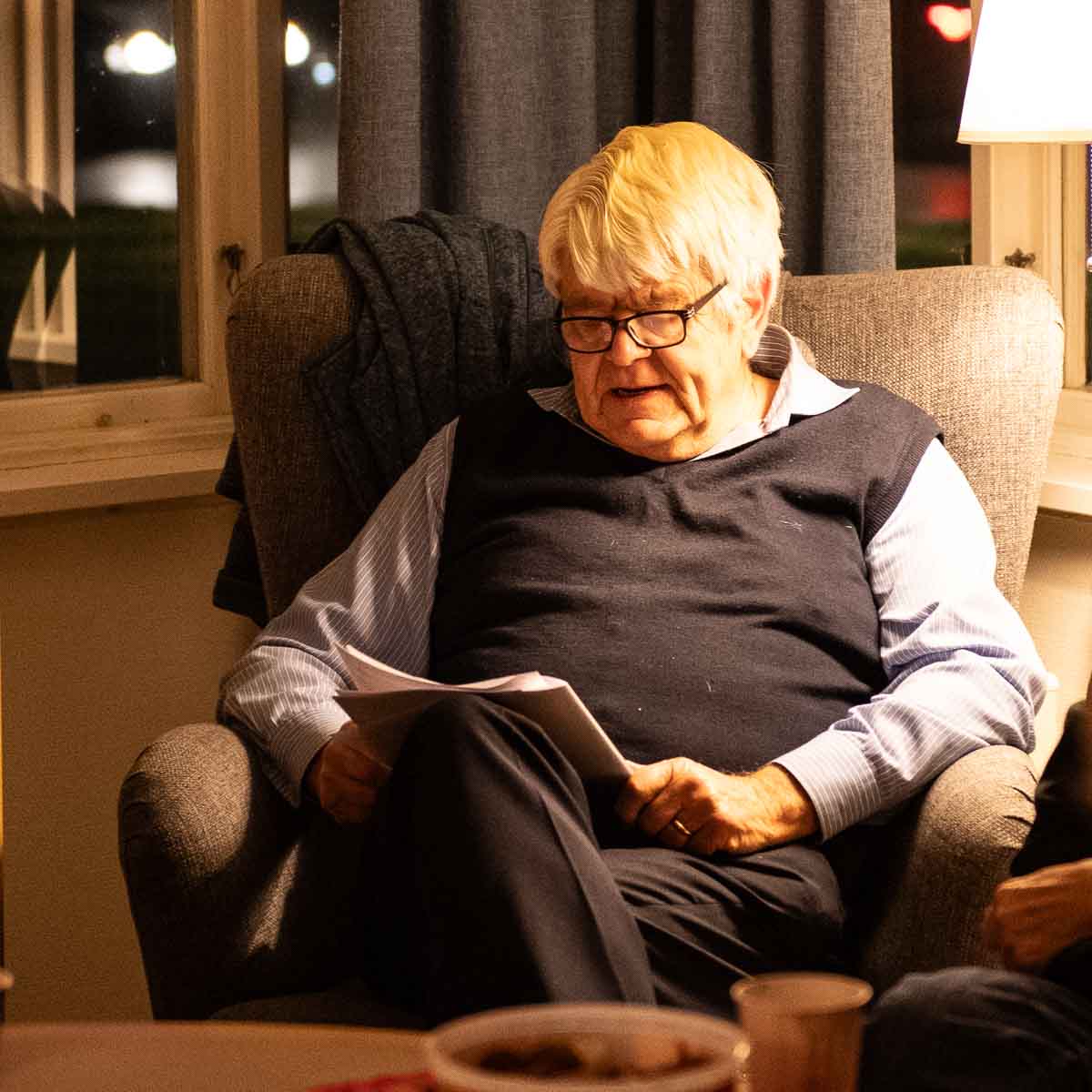 Han har efter mycket faktaforskning skrivit ner historier om händelser som inträffat lokalt under senare hälften av förra århundradet. Han har därmed skapat en guldgruva av minnen från lokala personer och händelser. Flera av åhörarna mindes personer han berättade om.