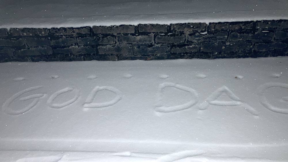 EMMALJUNGA. På promenaden i morse stod en hälsning skriven i snön.