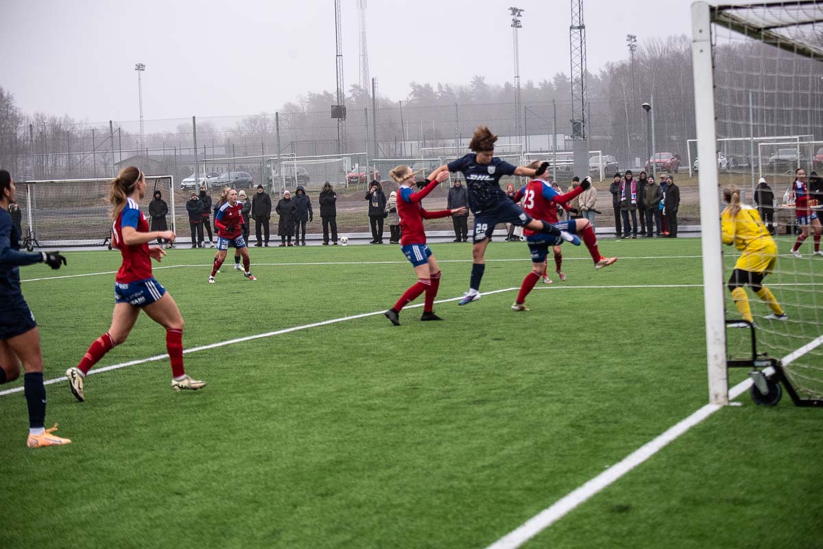 FC Nordsjälland hade tagit sig till ett som vanligt kallt, disigt och blåsigt Österås i Hässleholm. På det nya konstgräset genomfördes matchen under bevakning av kanske hundratalet supporters.