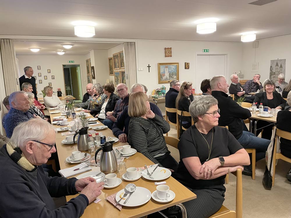 Som vanligt blev vi serverade goda mackor med skinka och ost, och en förträffligt god kaka till kaffet. Dragning blev det på lotterna och många vinster fanns att välja på för de lyckliga vinnarna. Vår Curre kantor hade fyllt 85 år i helgen så han hyllades med 4-faldigt hurra och Ja, må han leva. Sist nationalsången.