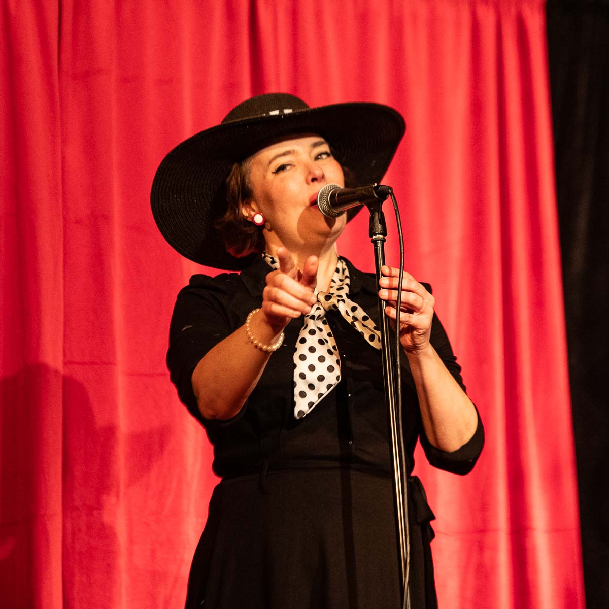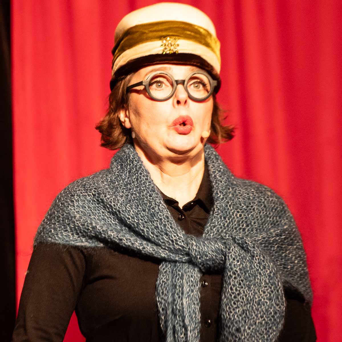 Teaterföreningens ordförande Birgitte Leger tackade för en föreställning med musik, humor och teater