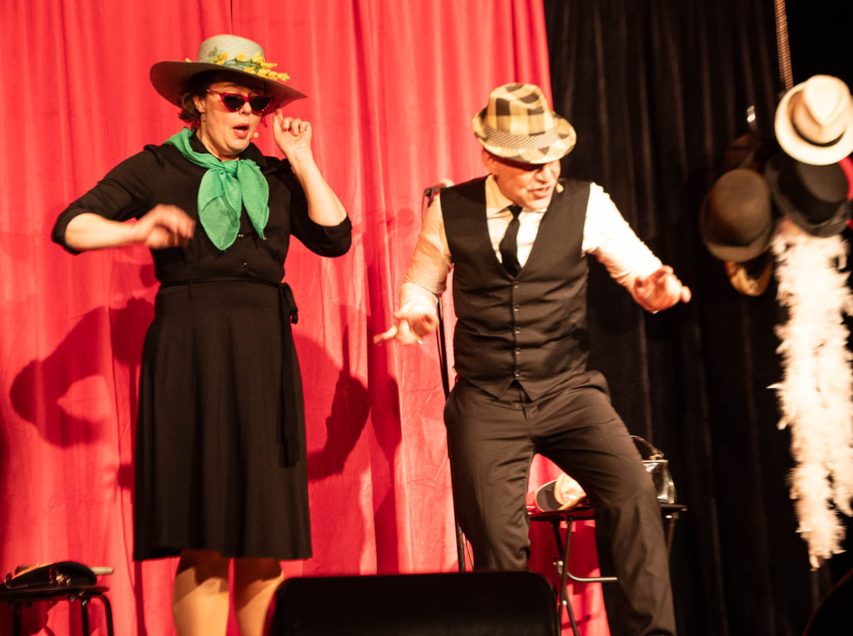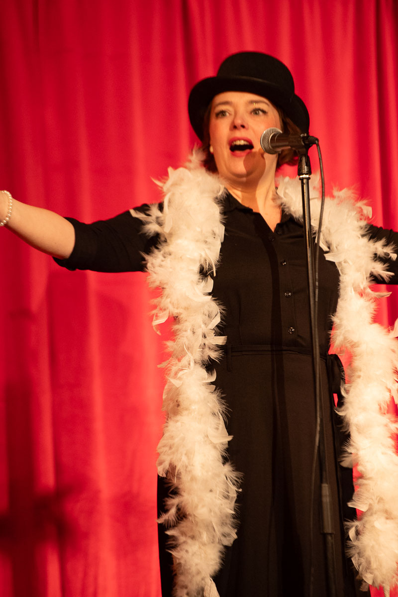 Teaterföreningens ordförande Birgitte Leger tackade för en föreställning med musik, humor och teater.