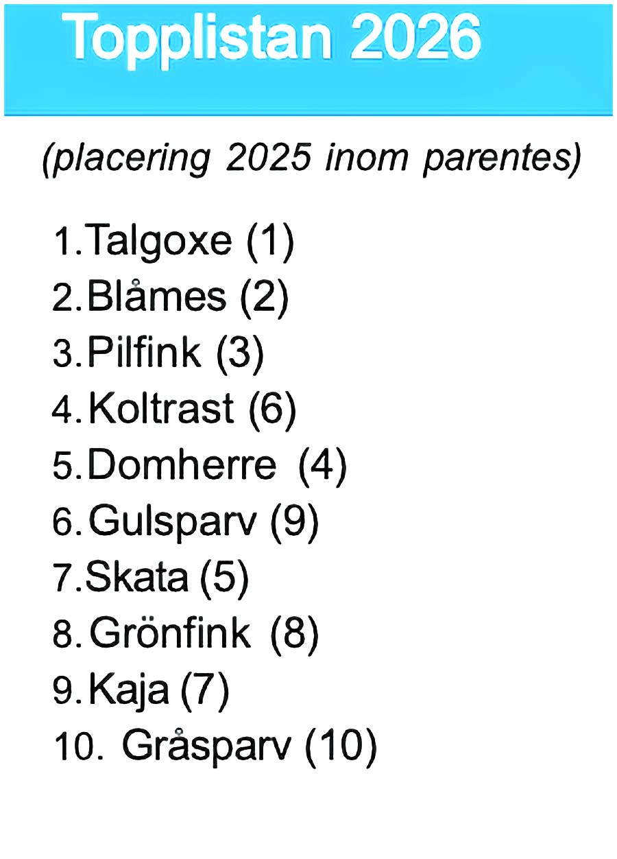 VITTSJÖ, BJÄRNUM. Återigen är Talgoxen den vanligaste fågeln vid våra fågelmatare. Det visar årets upplaga av den stora fågelräkningen ”Vinterfåglar inpå knuten”.