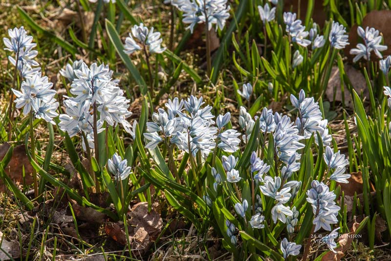 Blommorna är vita till ljust blå med en mörkare blå mittnerv och den blommar i april-maj, en del porslinshyacinter blommar just nu i trädgården.