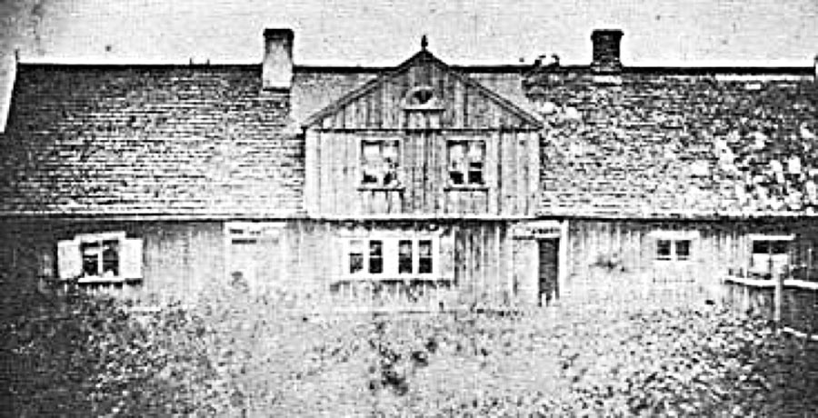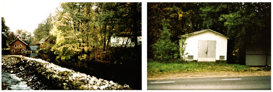 Platsen för Gretedahls färgaregård som den såg ut för ett 30-tal år sedan. Kvarnen på vänstra bilden brann i december 2000.