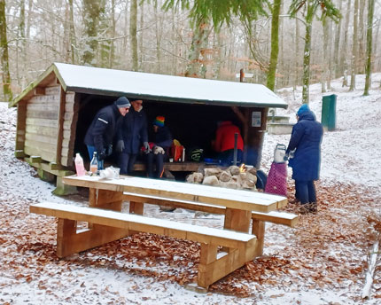 Vi börjar i lingonskogen. Här finns gott om olika vanliga hattsvampar. Men tittar man noga ser man att ett och annat lingonblad har förändrats. De är inte längre gröna, utan har blivit röda, konkava och lite tjockare än normalt. Det är en svamp som invaderat lingonbladet. Svampen kallas lingonsvulst. Undersidan av bladet blir alldeles vitt av sporer som ska sprida svampen vidare. Fotot är taget i närheten av Uddvägens förlängning ut på Udden. (