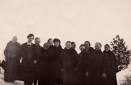 En av få äldre bilder 1930-1940-talet med Hultatorp syförenings medlemmar. F. v. Hanna Johansson, Hultatorp, Hilda Bengtsson, Greta Johannesson, Nanny Nilsson, Mimmi Nilsson, Tyra Nilsson, Botilda Jönsson, Anna Bengtsson, Karin Pålsson (skymd), Selma Nilsson, Hanna Nilsson och Selma Mårtensson.