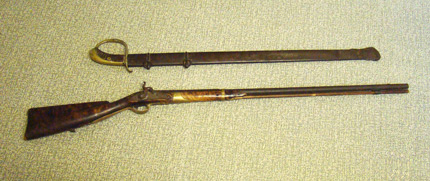 Ola Kämpes mynningsladdare och Per Kjämpes sabel sida vid sida.