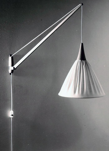 | Vägglampa 713, ställbar i oljad ek och skärm i opaliserad plexiglasskärm. Ritad den 20 september 1957 | ![]() |