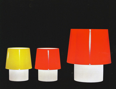 | Bordlampa 1241 LUNO i högvärdig Akryl i tre olika färger gul, röd och orange. Diameter 300-400 mm.. Totalhöld 370-460 mm. Max 60W/E27. Ritad 1972-10-25. |