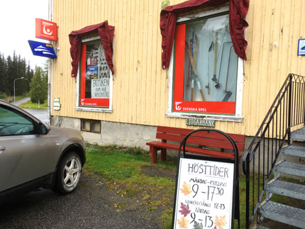 Där fanns det mesta Kristina handlade lite och jag lämnade in stryktipset där. Sedan lämnade vi Dikanäs med riktning mot Storuman.