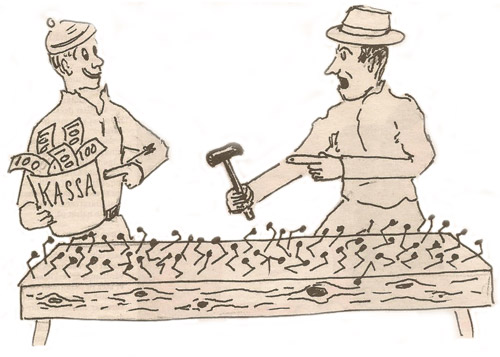 Tre 3-tumsspik kostade en krona och man fick dubbla insatsen tillbaka för varje spik som drevs in i plankan ända till spik huvudet. Jag tror inte att någon lyckades med den bedriften.