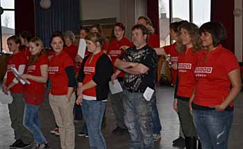 De övade också in sina rörelser för man kan ju inte bara stå rakt upp och ner och sjunga. Det måste vara SHOW. Och det var det och mer kommer det att bli för de har nästan 14 dagar på sig till den stora dagen - 16 april. Tom Munkberg tyckte att de var duktiga och både han och kören tror naturligtvis på vinst.