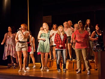 repetition. Det hade gått nästan 14 dagar sedan jag senast besökte en körrepetition. Då var alla lite trevande i rörelser och placeringar men på genrepet kunde man tro att de inte gjort annat än stått på en scen. Att en av tjejerna fick hoppa in efter ett återbud på måndagen märktes inte alls. Upplevelsen var som natt och dag mot tidigare vilket ju var tur med tanke på den stora finalen.