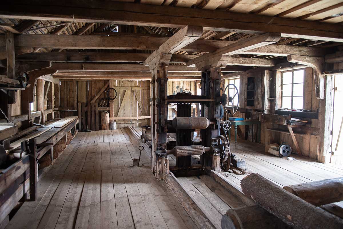 Inne i det gamla sågverket, som är ett av Hässleholms kommuns byggnadsminnesmärke, där för övrigt just Vieån utgör gräns mellan två tidigare socknar, Gundrastorp och Ekholmens socken har restaureringen gjort att hembygdsföreningen hoppas att man inom några år kan visa upp även det vattendrivna sågverket.