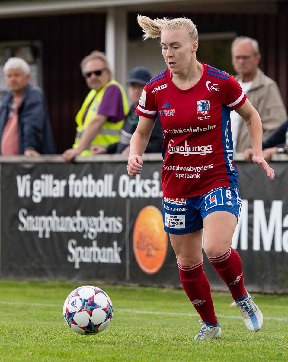 Helt rättvist kommer ledningsmålet för Vittsjö i den 45 minuten. Detta genom Katrina Gorry, assist Hanna Ekengren. Efter två minuters tillägg går lagen till pausvila.
