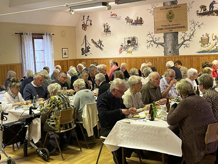 VERUM. SPF i Verum hade bjudit in föreningar från Bjärnum och Vittsjö till denna Vårfest, fast ute var det inte så mycket vår, men inne blev det en mycket varm och god stämning, bland nästan 100 som samlats i bygdegården. Jan välkomnar alla och sen tar kantor Curre vid med allsång ”Ju mer vi är tillsammans ”.